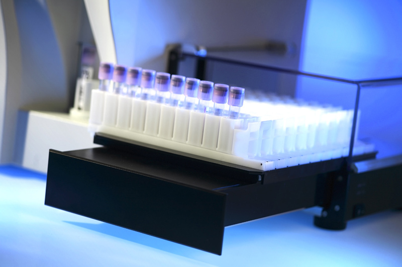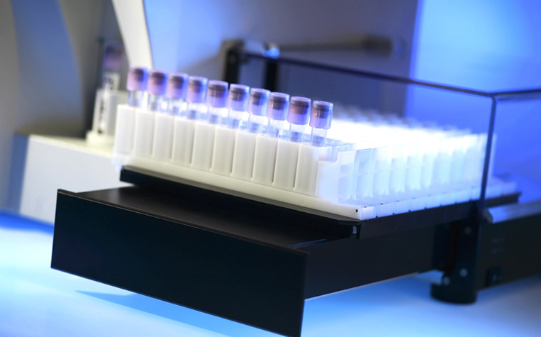 - Автоподатчик со встроенным считывателем штрих-кодов и миксером вместимостью 100 пробирок (10 штативов по 10 пробирок в каждом).