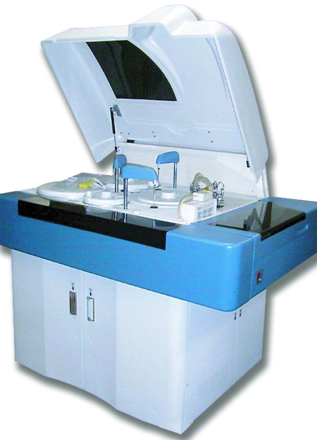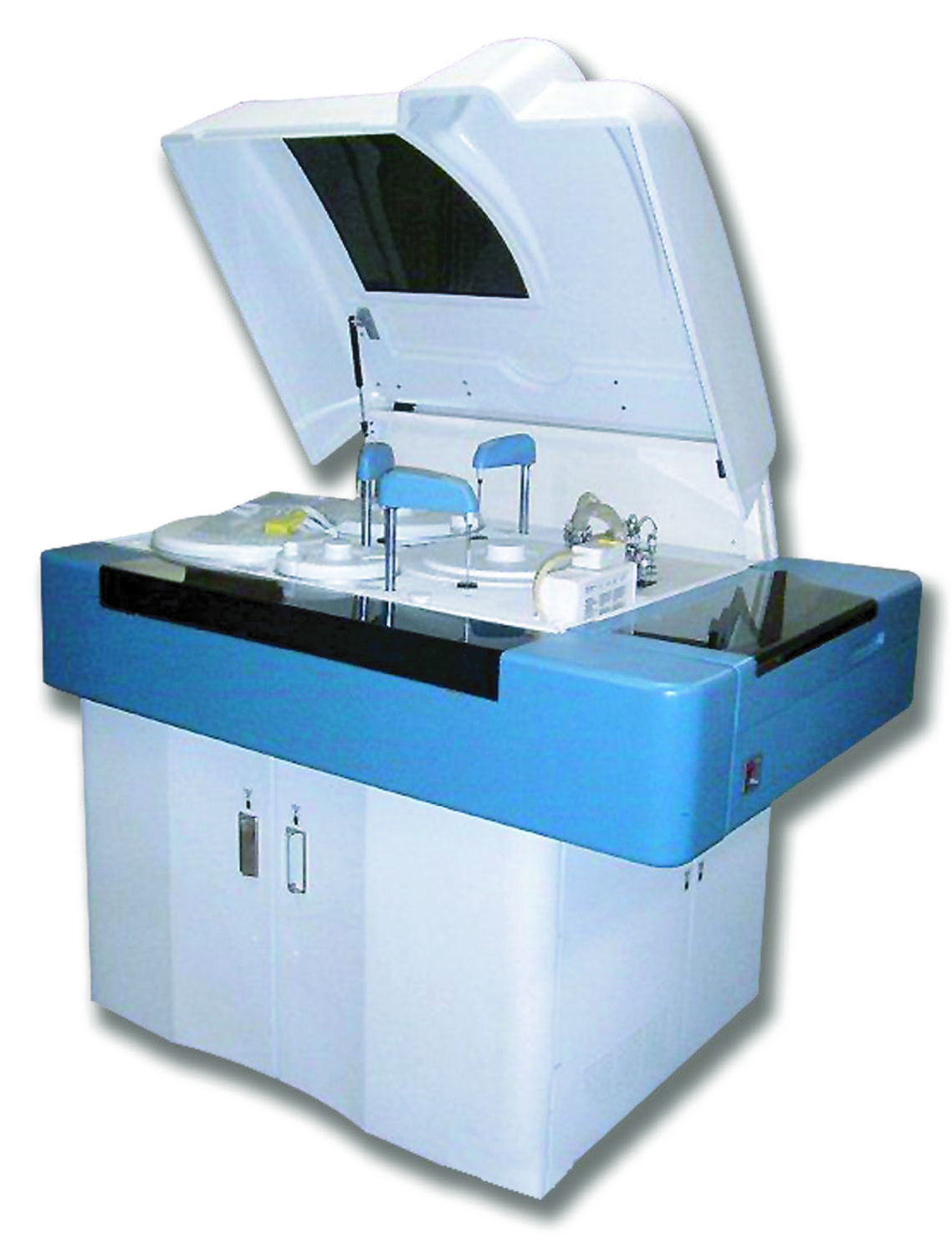 Автоматический биохимический анализатор со свободным доступом, пациент ориентированный, трехреагентная система. Прибор способен производить до 1120 тестов в час (800 фотометрических и 320 потенциометрических тестов).