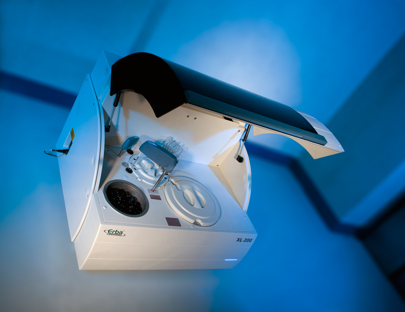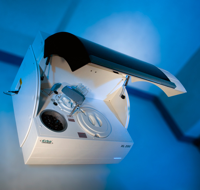• Встроенный сканер штрих-кода для флаконов системных реагентов Erba Lachema